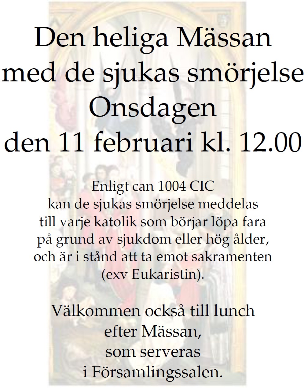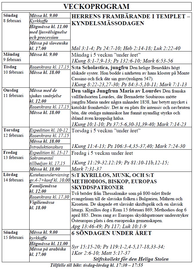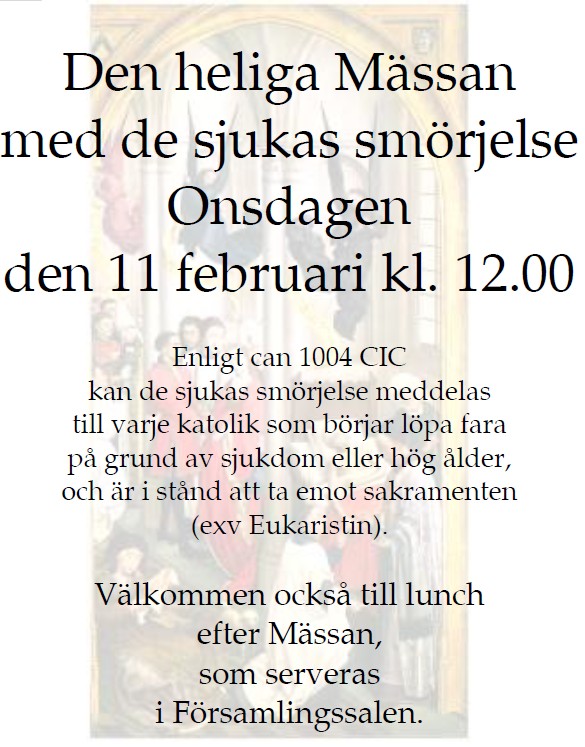 den heliga Mässan i Rönne kyrkan på Skolgatan 33 kl. 8.30 och 10.30.
