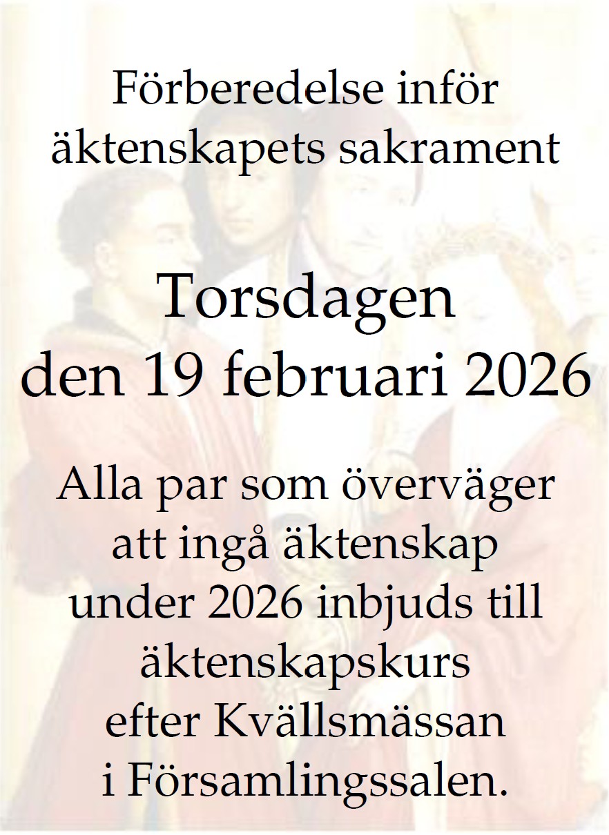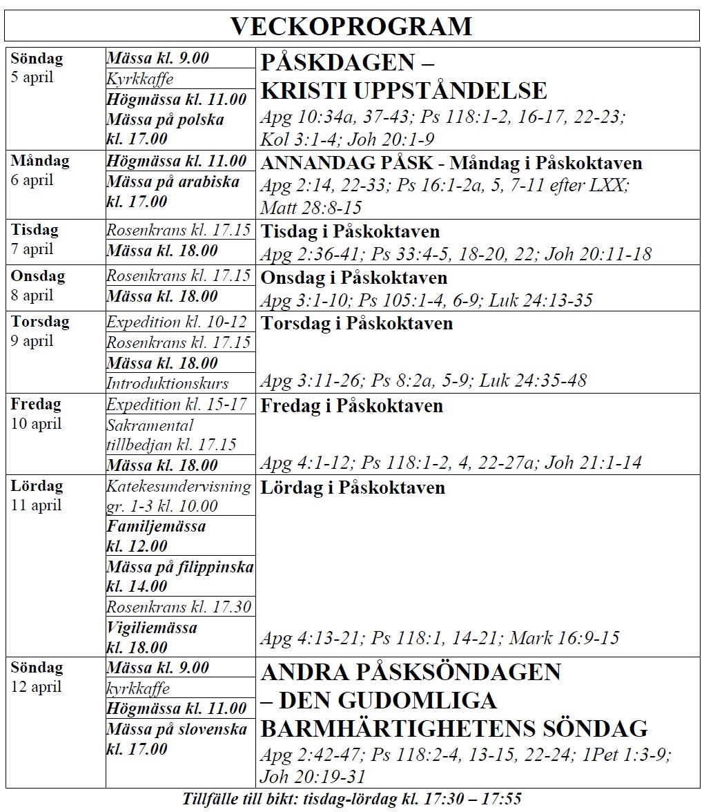 lördag – Vigiliemässa kl. 18.00