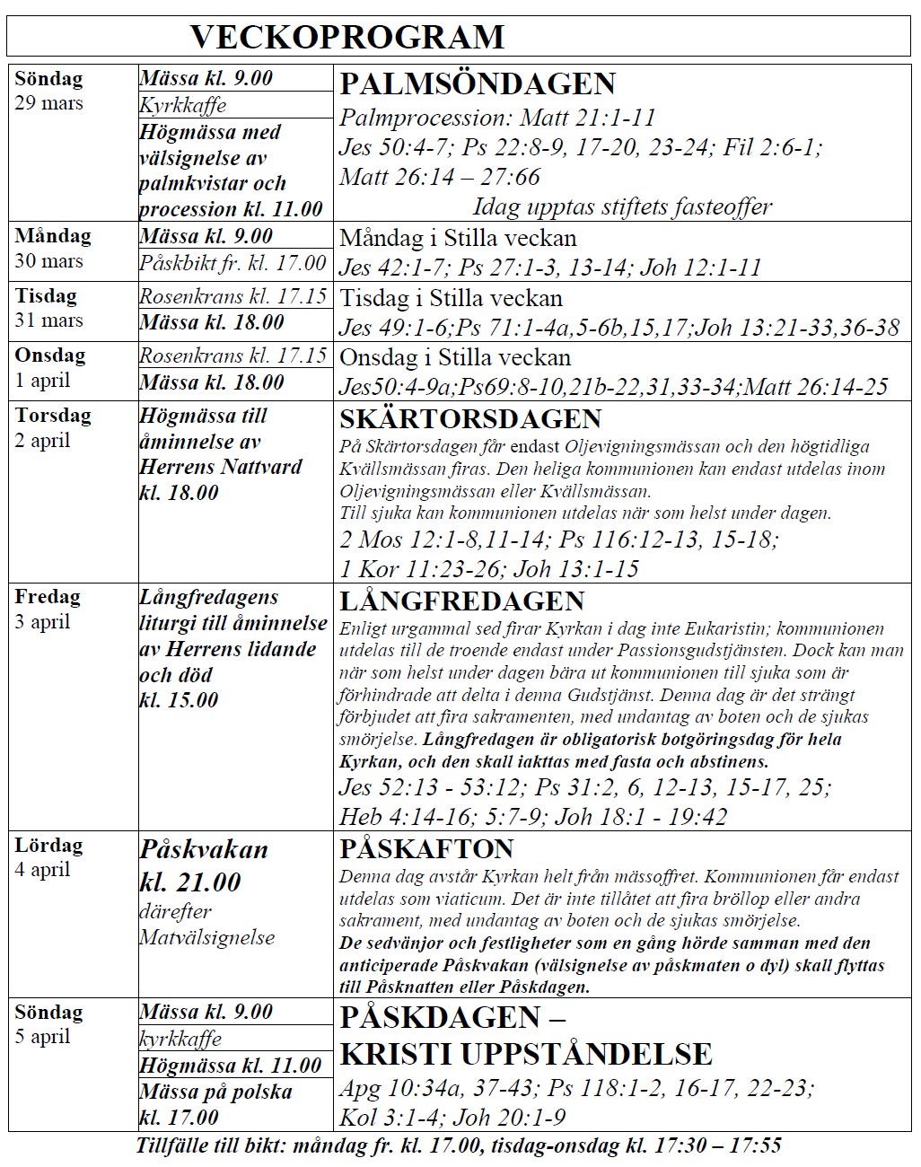 För avvikande tider se aktuell gudstjänstordning